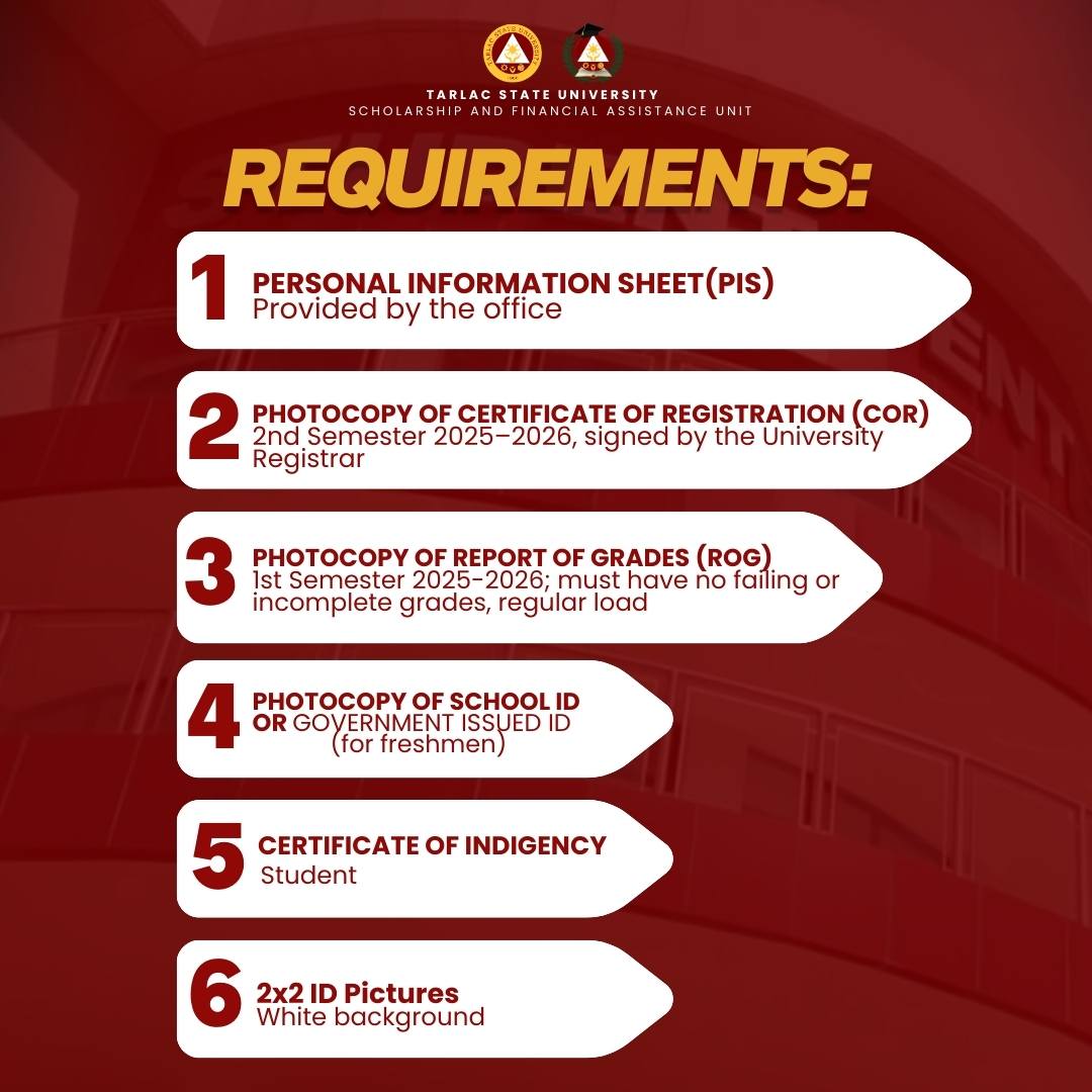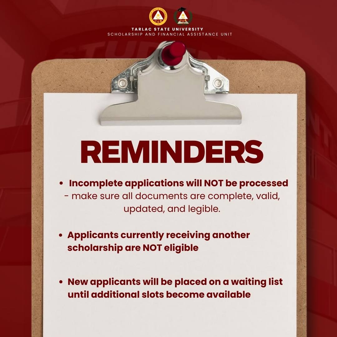 Calling the attention of all Tarlac State University students from 1st to 5th year. The application for the scholarship is now open and is free of charge.