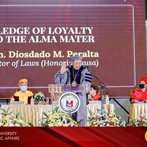 Through the initiative of the School of Law, Tarlac State University conferred the degree Doctor of Laws, honoris causa, to Supreme Court Chief Justice Hon. Diosdado M. Peralta on February 19, 2021 at the Bulwagang Kanlahi in Tarlac City.